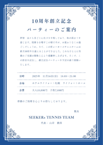 この度私たちSEEKERs TENNIS TEAMは10周年を迎えることが出来ました。